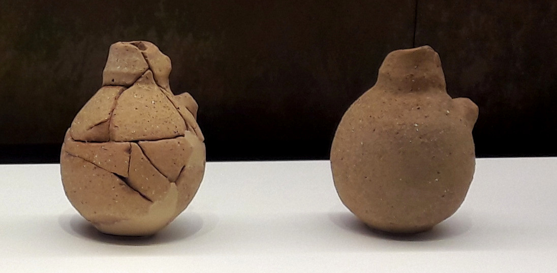Small ceramic bottles commonly found in tombs to hold precious aromatics like perfume and oil.