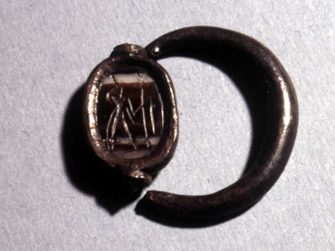 Enigmatic commercial amphora engraved with an Egyptian scarab seal and a faint image of Horus.