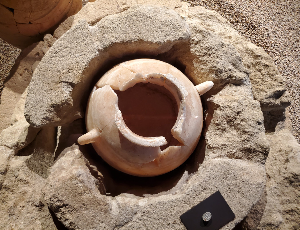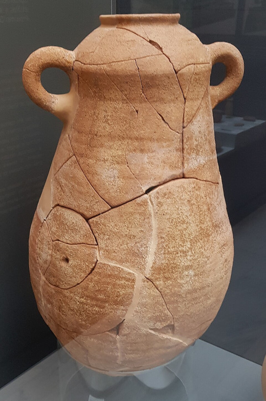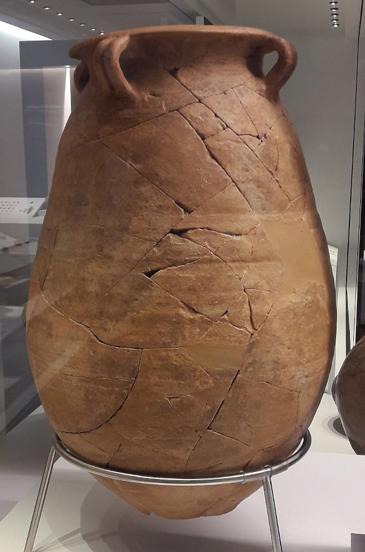 Large vessel (pithos) used for bulk storage of wine, olive oil, sauces, grain and dried fruits.