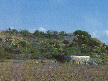 Oval-shaped pit tomb with alabaster urn in the centre containing the deceased's personal scarab.