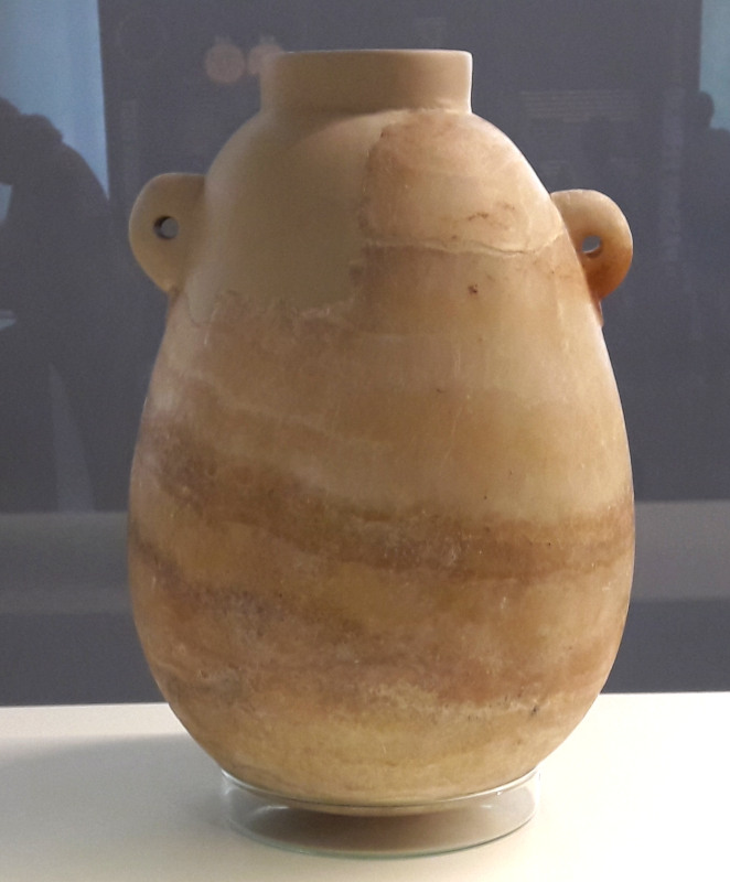 Delicate alabaster urn that carried the ashes, made in an Egyptian workshop.