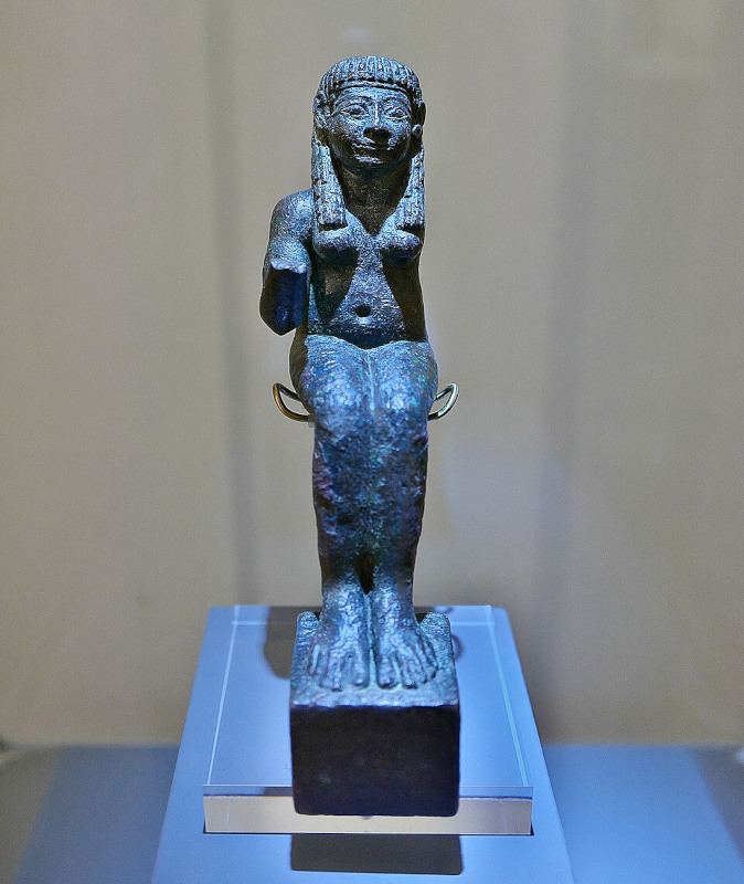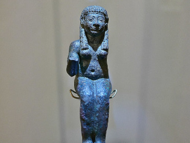 Bronze statuette representing the Phoenician goddess Astarte sitting on a footstool.