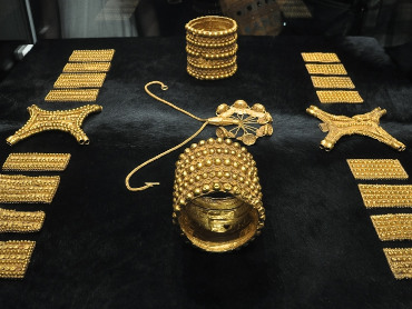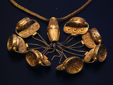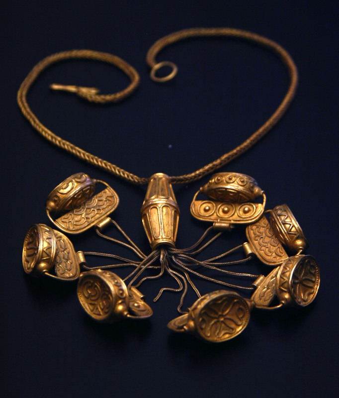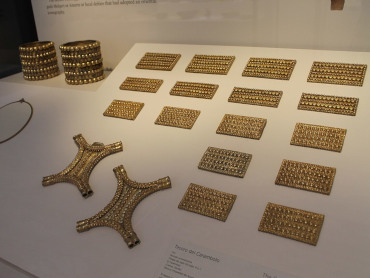 Consisting of 21 gold objects: a necklace, two pectorals, 16 plaques and two bracelets.