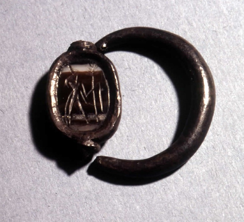 Enigmatic commercial amphora engraved with an Egyptian scarab seal and a faint image of Horus.