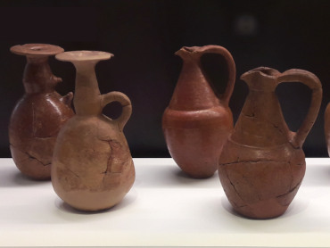 Mushroom lip and trefoil (three spout) mouth jugs to contain wine, oil and aromatics.