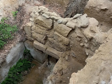 A view from above the only remaining Phoenician chamber tomb at Trayamar.